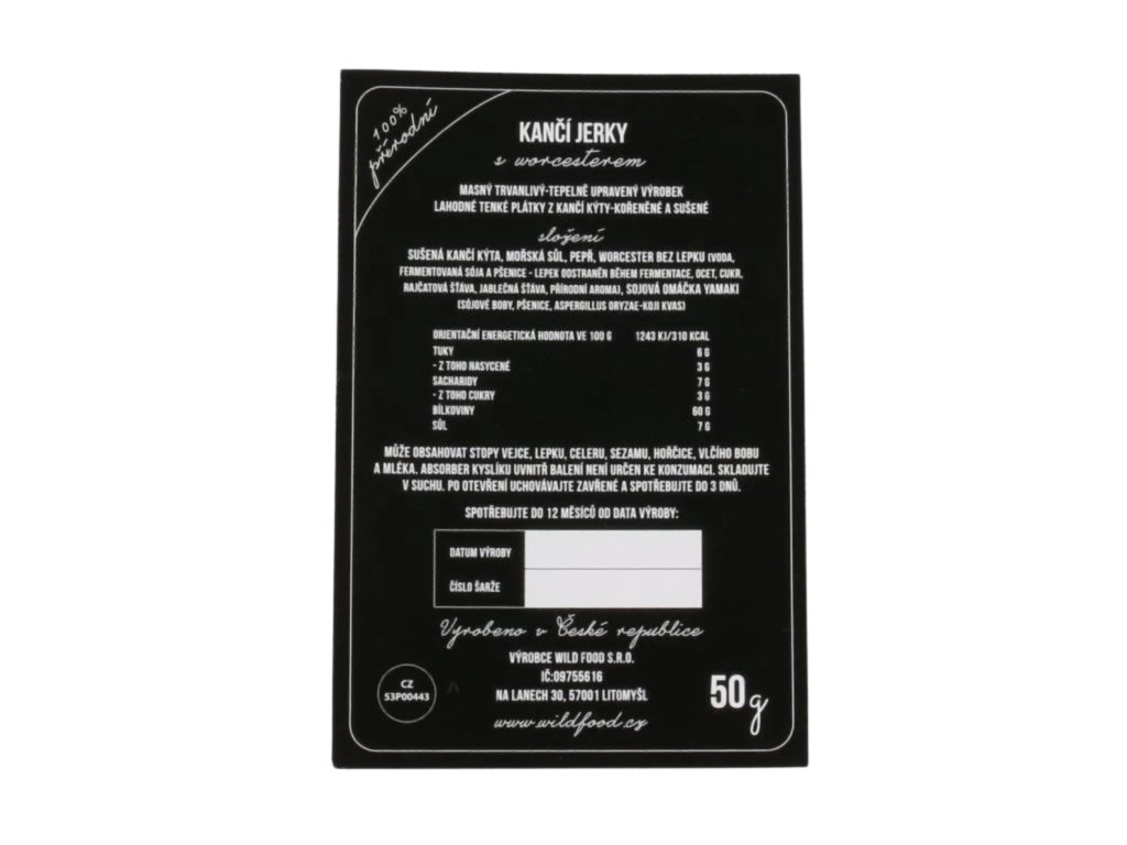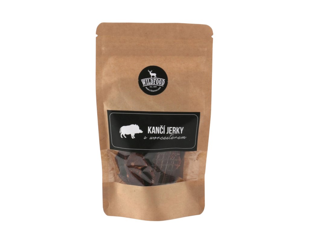 Poctivé kančí jerky s Worcesterem. Sušené maso z divokého kance s výraznou chutí a pevnou strukturou. Pro ty, kdo chtějí maso bez kompromisů.